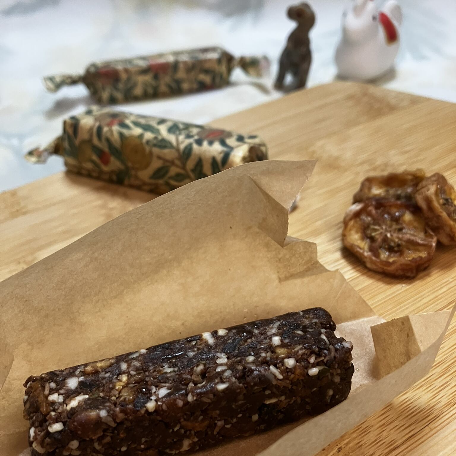 ねっとりしたドライバナナとビターカカオの組み合わせ。