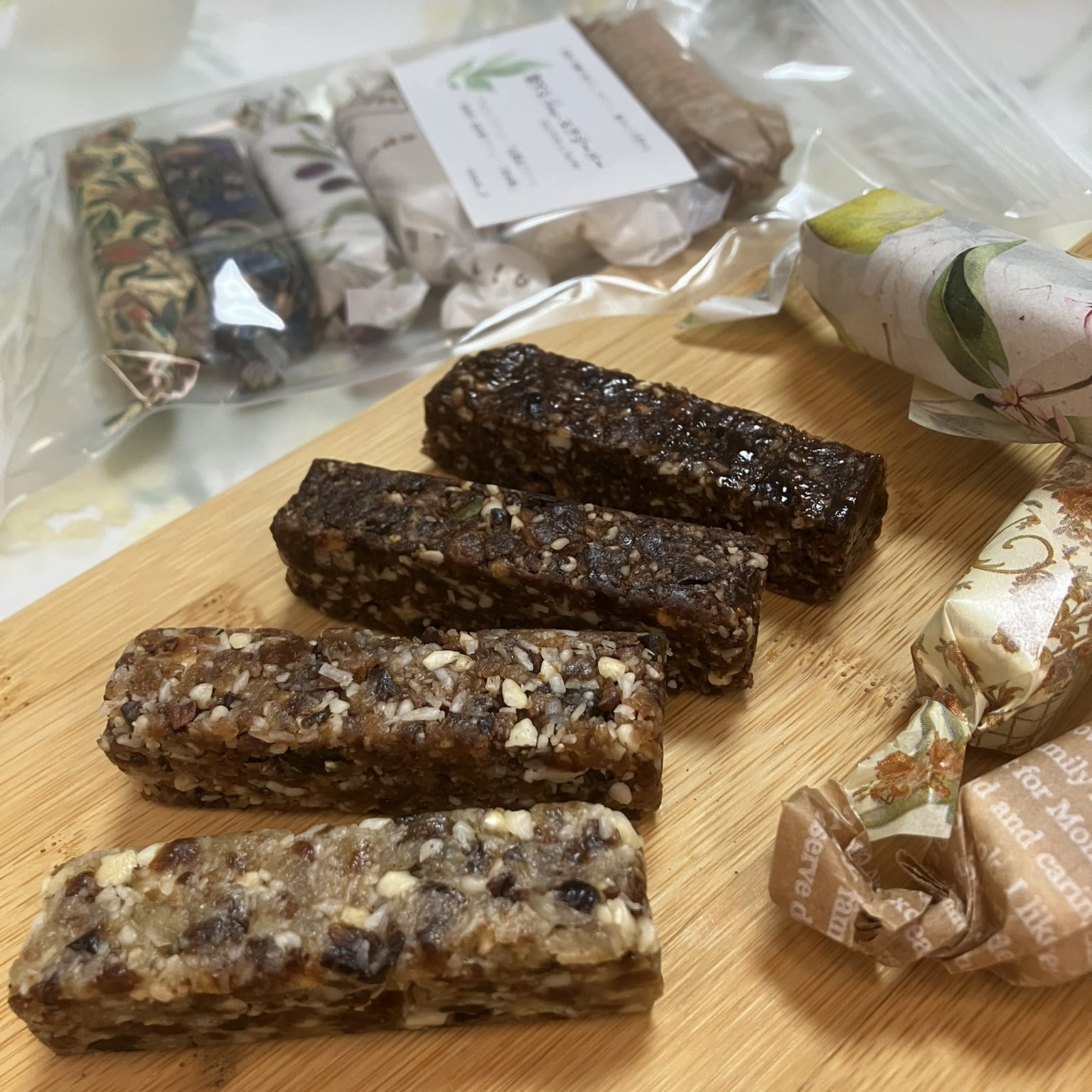 有機カシューナッツ、有機かぼちゃの種、有機プルーン、有機レーズン、有機デーツ、有機ココナツファイン、晩白柚(発酵加工)、甘夏(発酵加工)、りんご(発酵加工)、杏(発酵加工)、有機麻の実、有機ドライバナナ、有機カカオニブ、有機カカオパウダー、有機白くわの実、ダークラム、濱納豆、有機バニラビーンズ、有機シナモン